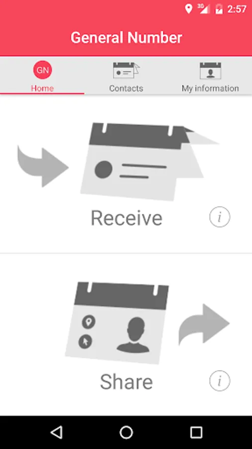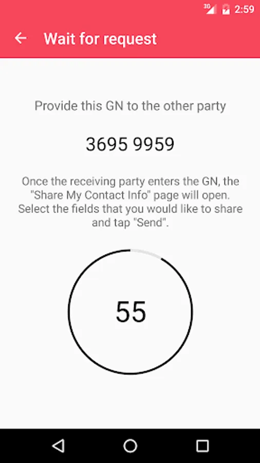 With this application, instead of spelling your contact information, you will provide a randomly generated short numerical identifier – General Number (GN), which acts as a handle to request contact information from your phone. Just choose what you want to share, click “send,” and you are done.