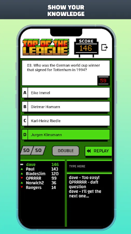 1. If you fancy a bit of banter in between questions you can join the TOTL live chat area, which is on the same screen as the quiz.