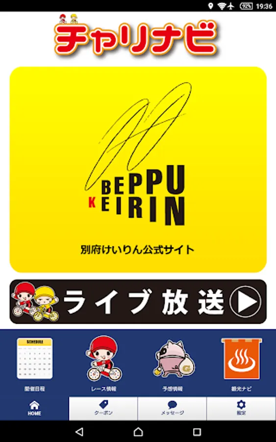 Charinabi is a free app that can be viewed feel free tourist information of information and Beppu about Beppu bicycle race.