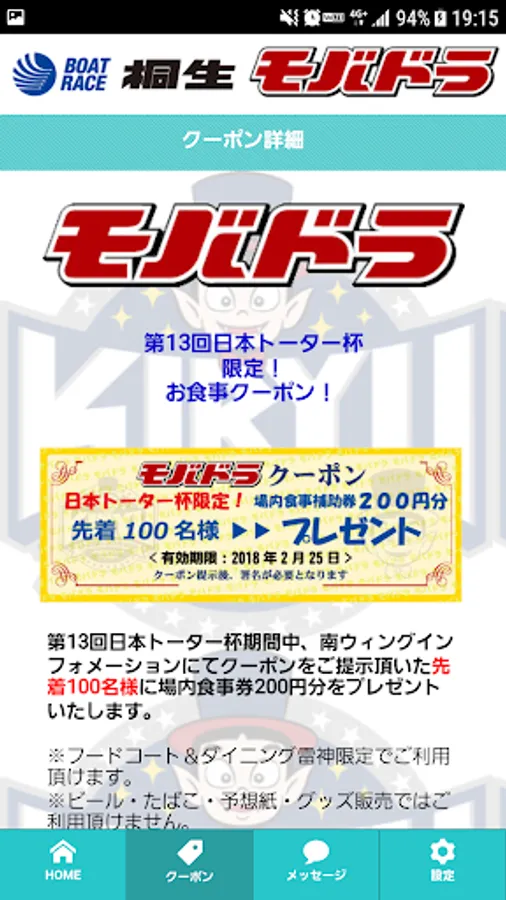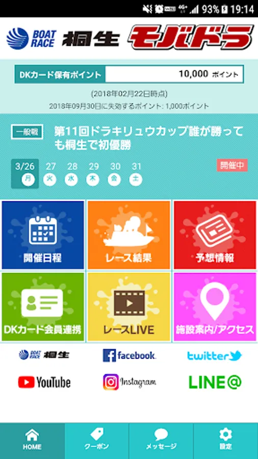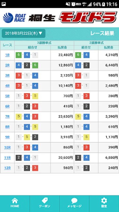 Mobadora is, various kinds of information (expected information, such as race results) of the boat race Kiryu and deals coupon (hall dietary supplement tickets, etc.) is the free app that you can get.