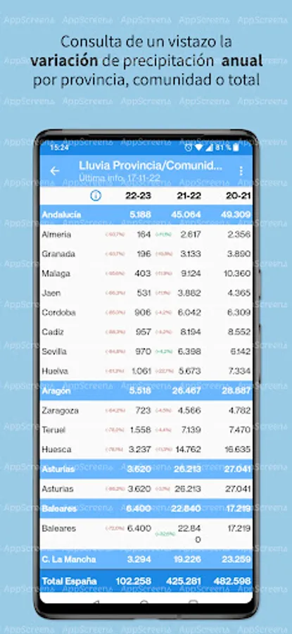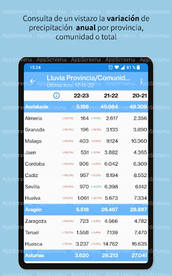 * You can consult the % variation of accumulated precipitation of the current hydrological year with respect to the previous one for: