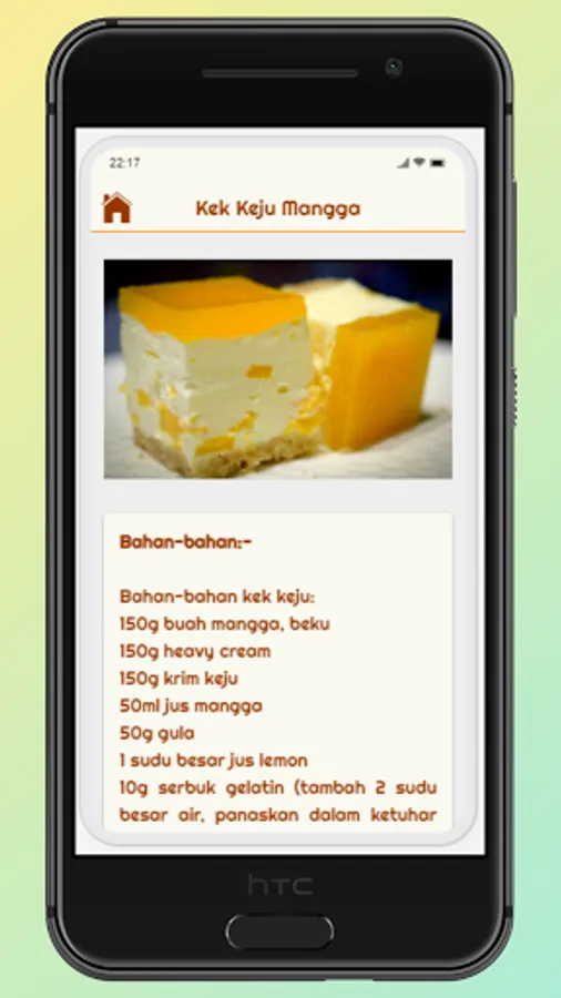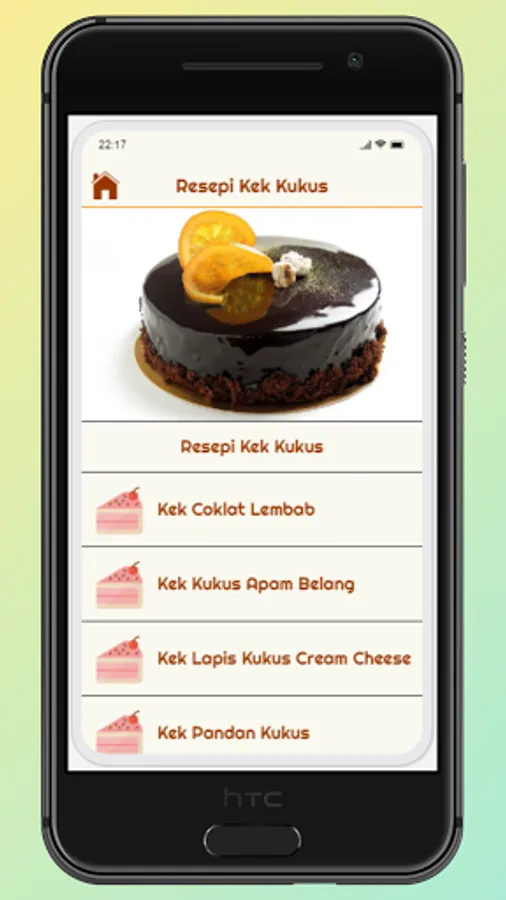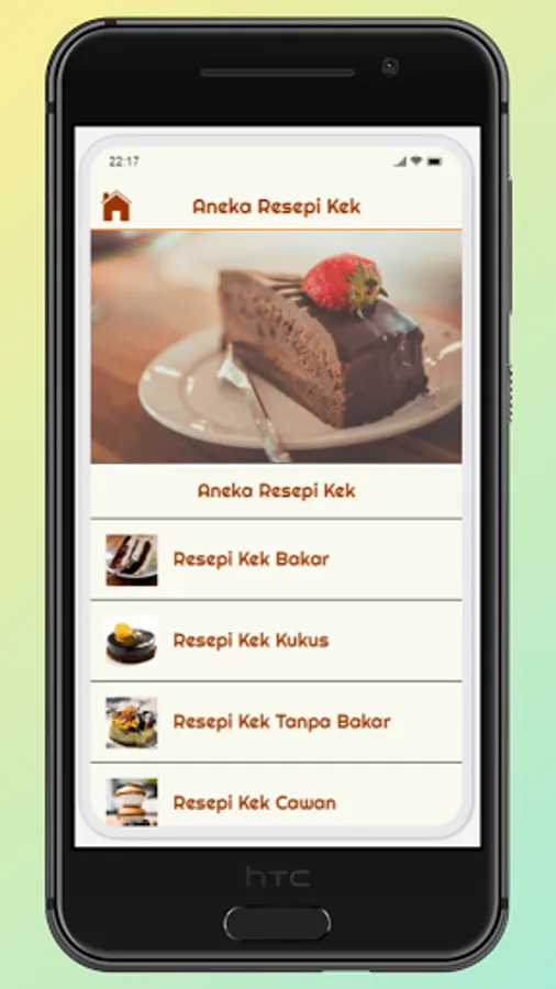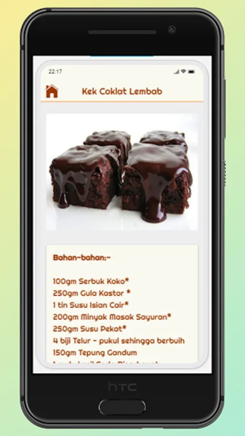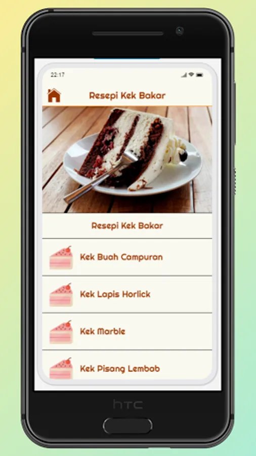 Antara resepi kek yang terdapat di dalam aplikasi ini ialah:-
