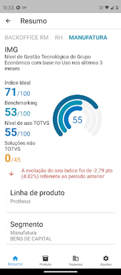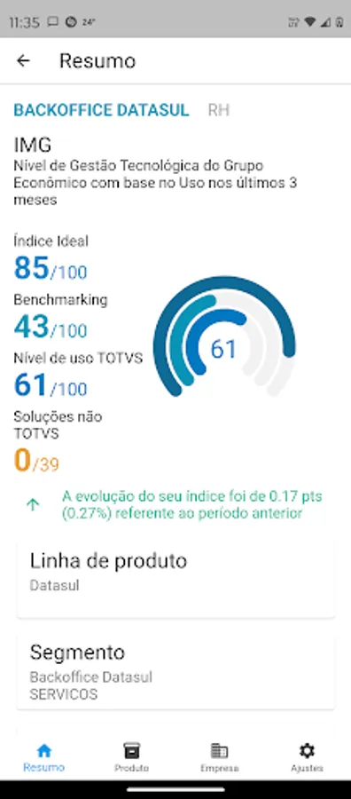 It is possible to measure the maturity of the management of a Totvs Customer by monitoring Usage in our Totvs Solutions.