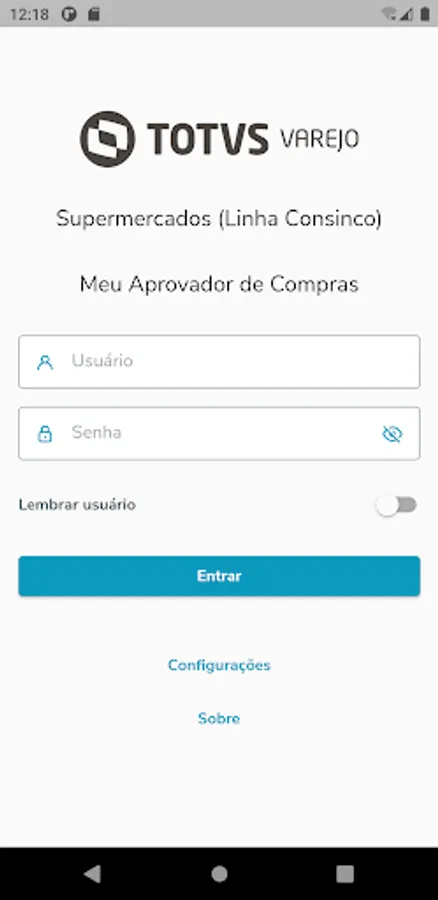 Meu Aprovador de Compras is a corporate application that requires a valid user to access one of TOTVS Varejo's mobile solutions (Consinco Line).