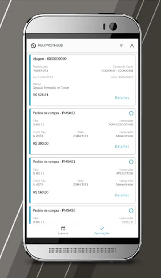 It is also possible, through the app, to approve/reject rendering of accounts, a process integrated with the travel control of the Financial module of the ERP TOTVS Backoffice (Protheus Line).