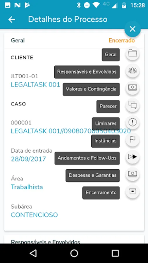 Through it you can consult the number of the process, the parties involved, the instances, values, follow-ups, progress and all other details linked to that Legal Subject.