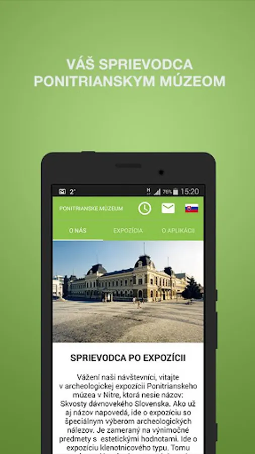 Applications "Nitra Museum" runs a simple click on the Open button and you'll be greeted with a welcome screen photo of Nitra Museum in Nitra.