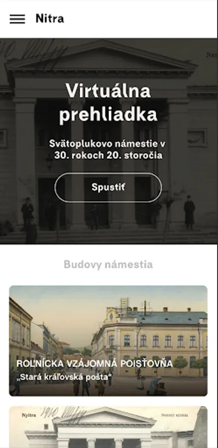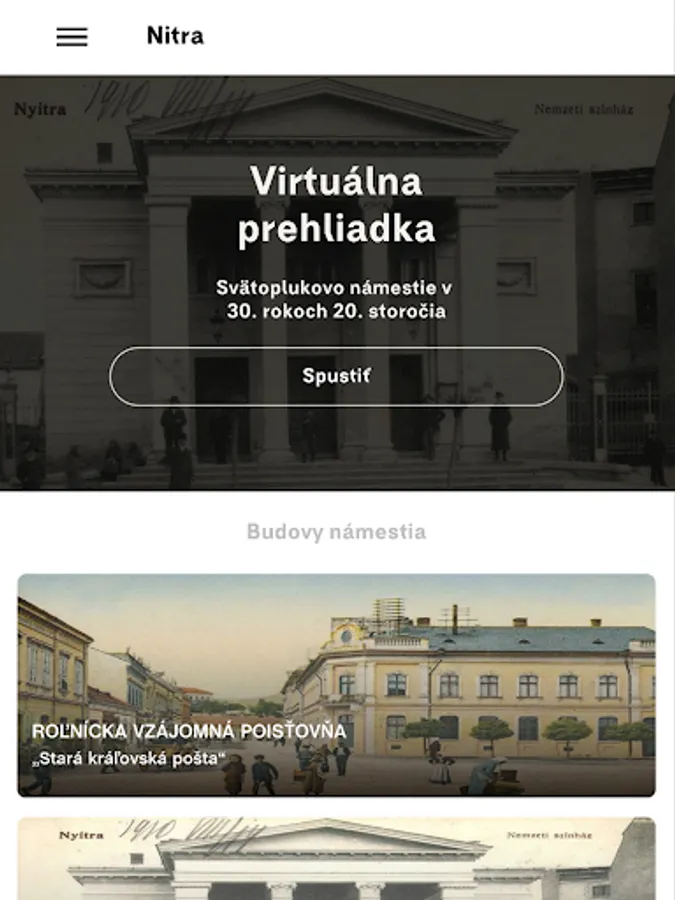 Nitra: The Lost City is a project to uncover the lost layers of Nitra's history using modern virtual and augmented reality technologies. With the help of them, we will introduce you to the places of Nitra that you know - but in a completely different way, in their historical, almost forgotten form today. You can enjoy virtual tours from the warmth of home, but for a deeper experience, we recommend that you go through them directly to the places to which they relate. In addition to virtual tours, you will also find short descriptions of the most important objects of historical layers in the application