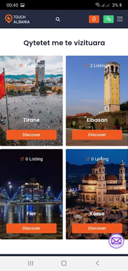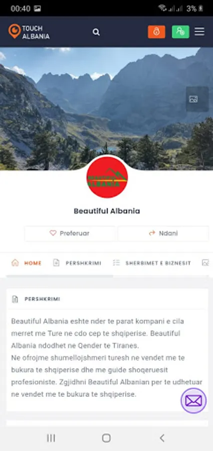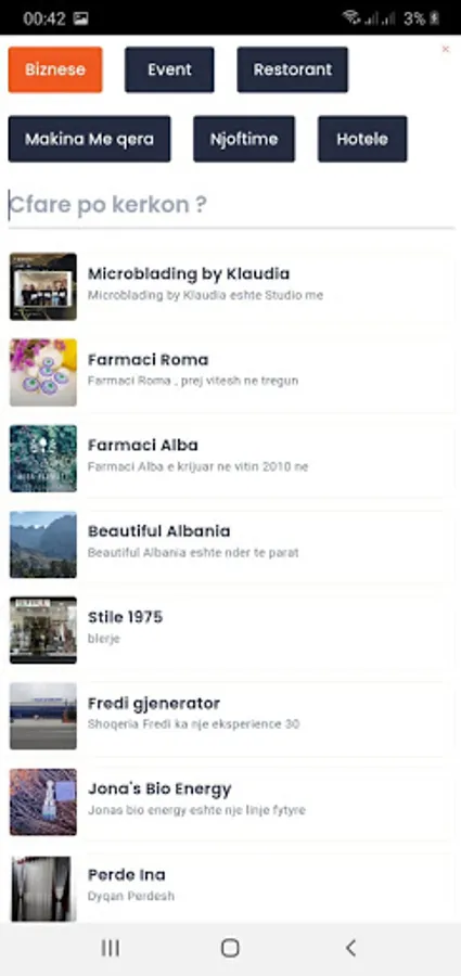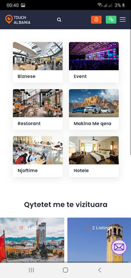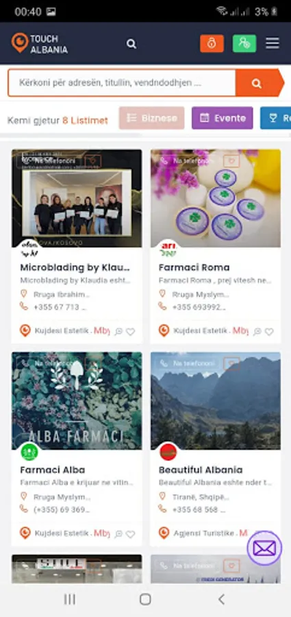 Touch Albania, offers you the listing of businesses, business contact information and also your connection with businesses through the application. You can find your nearest business with the service you need easily and quickly by searching on our platform the business category and activating the "Near me" filter. For more you can download the Application and see it in detail.