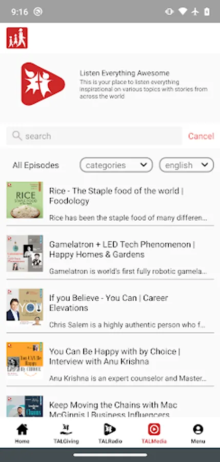 The TALLeaders app encourages volunteerism and social leadership through mentor programs and opportunities for experts to give back to society by taking on evangelist roles in TAL programs. The TALLeaders app is powered by Touch-A-Life (TAL) foundation.