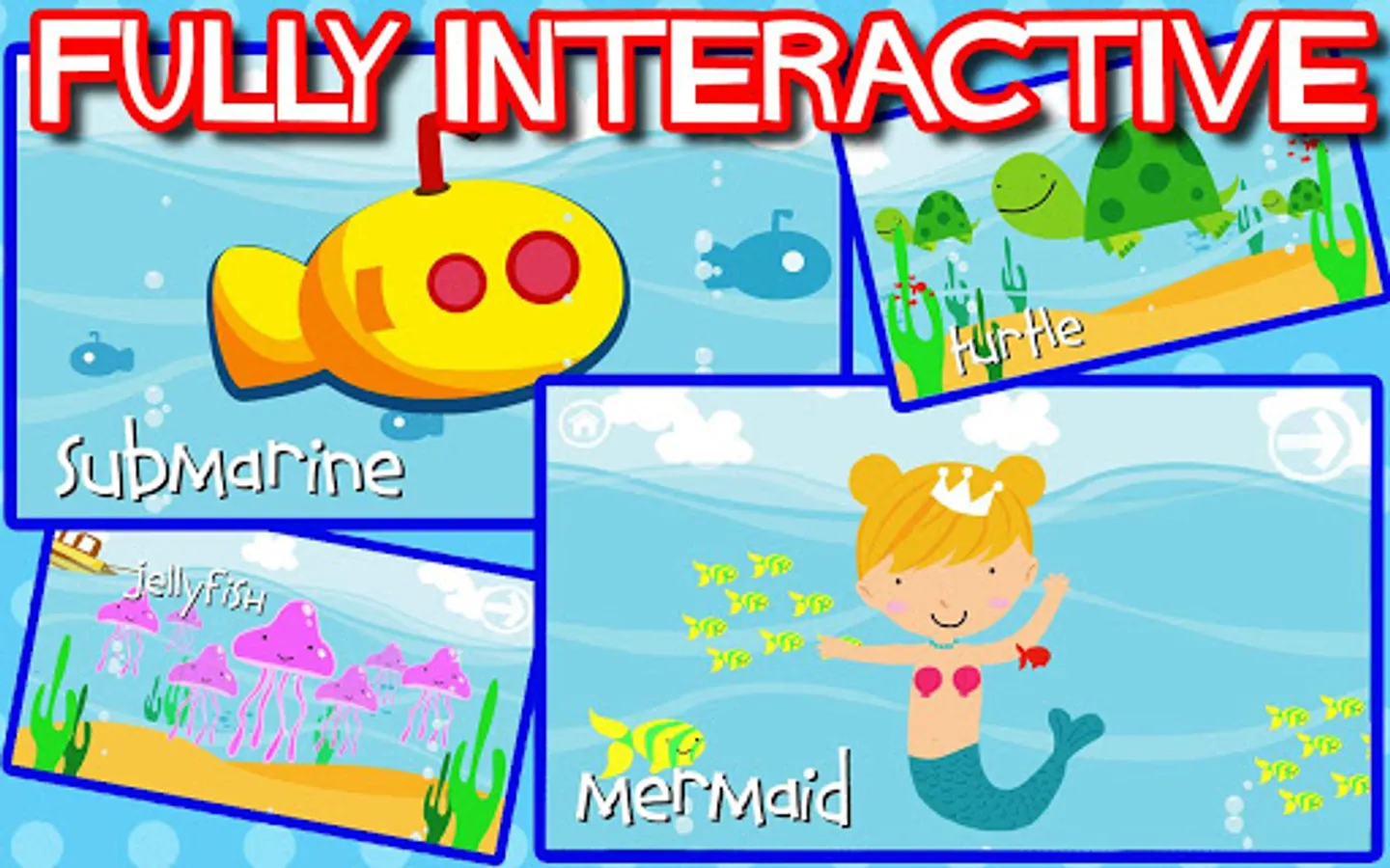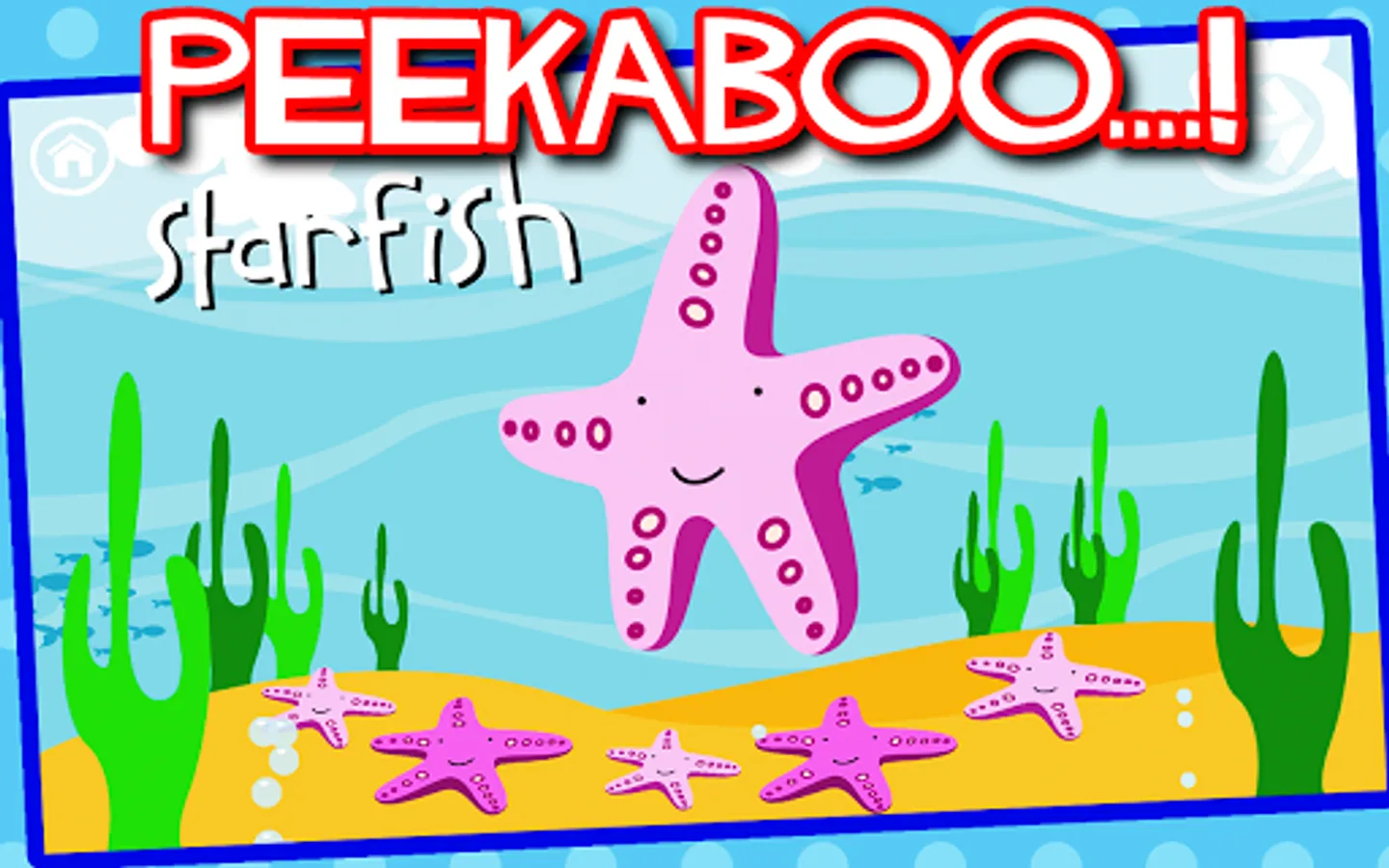 Peekaboo Ocean is a beautiful interactive peekaboo game for young children. Can your child guess which animal is hiding? BRIGHT COLORS, FUN ANIMAL SOUNDS and EXCITING ANIMATIONS. PLAY A TUNE with the musical Starfish, GO FOR A SPIN with the Octopus, DIVE with the Yellow Submarine, BLOW BUBBLES with the Jellyfish, GO FOR A RIDE with the galloping Seahorses…. and many more sea adventures in Peekaboo Ocean!