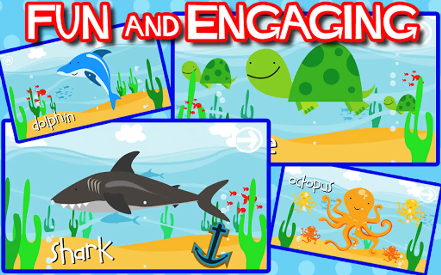 Peekaboo Ocean is stimulating, fun and educational. For younger kids and babies its simple mechanics help develop hand-eye coordination - a great introduction to basic computer skills. The bright colors and exciting sounds will help stimulate early sensory perception. Older kids (preschool and kindergarten) will enjoy learning the names of the animals and fish, and their associated sounds.