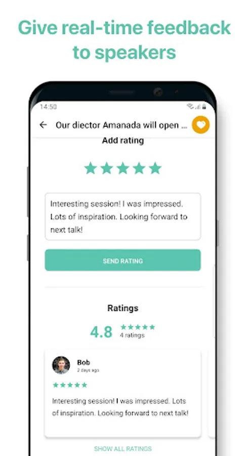 Let’s get you an event app that you will actually love to use! Who wouldn’t like to have everything in one place? With Eventee you can check the schedule and create your personal agenda, book workshops, give feedbacks, ask questions and share opinion, network with other attendees and even more! Say no to confusion or drowning in papers - you just need your phone! :)