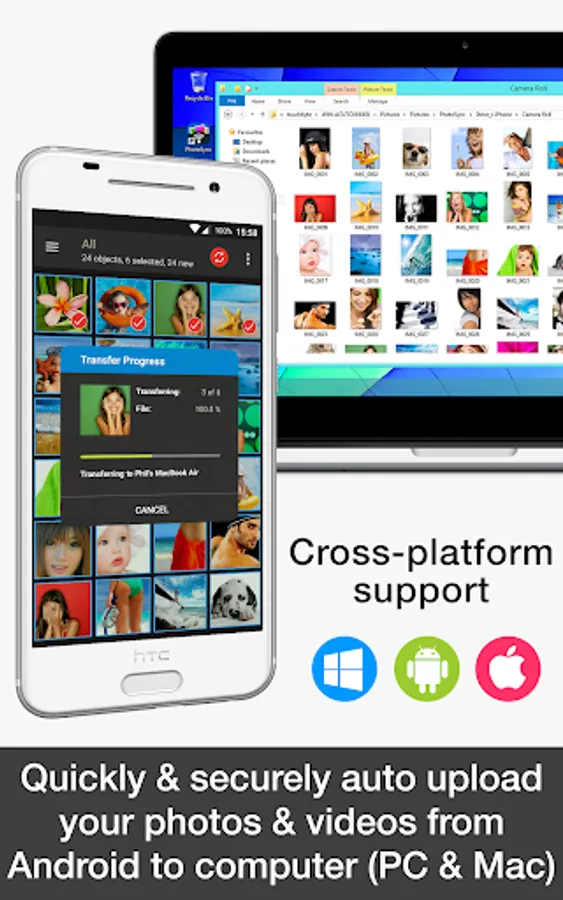 • Safely and securely backup photos and videos from Android devices to computer (PC & Mac) over WiFi