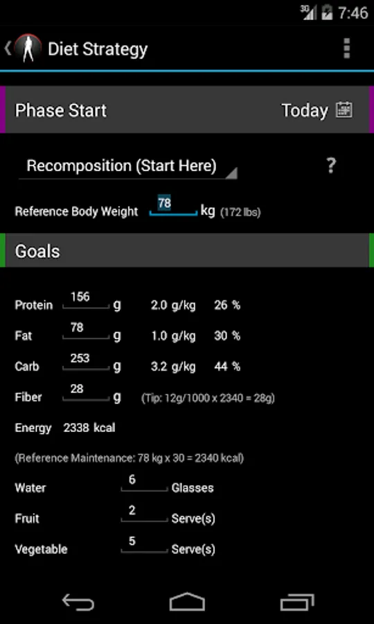 --- Serves of fruit and vege are goals and determined from weight entered without having to do anything else.