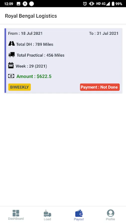 Royal Bengal Logistics is for RBL Driver which is used to manage driver loads and their payroll based on weekly or bi-weekly.
