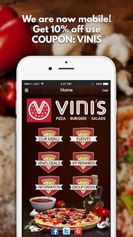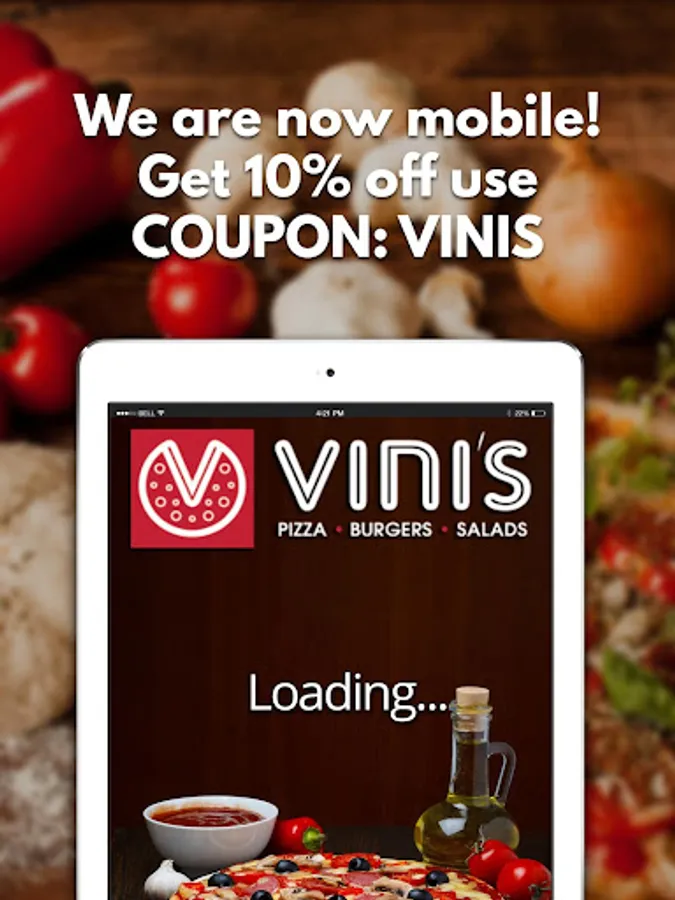 Now you can order from the Vini's Pizza app on your smartphone or tablet and get the latest deals and updates on our delicious menu.