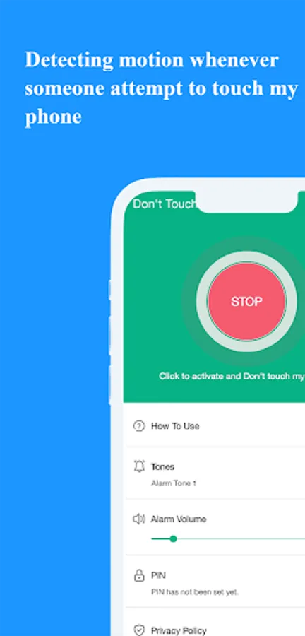 The Don't Touch My Phone tool will detect motion when someone tries to touch your phone without your permission, If someone touches your phone, the phone will activate the alarm. then you will be notified and find out who touch my Phone.