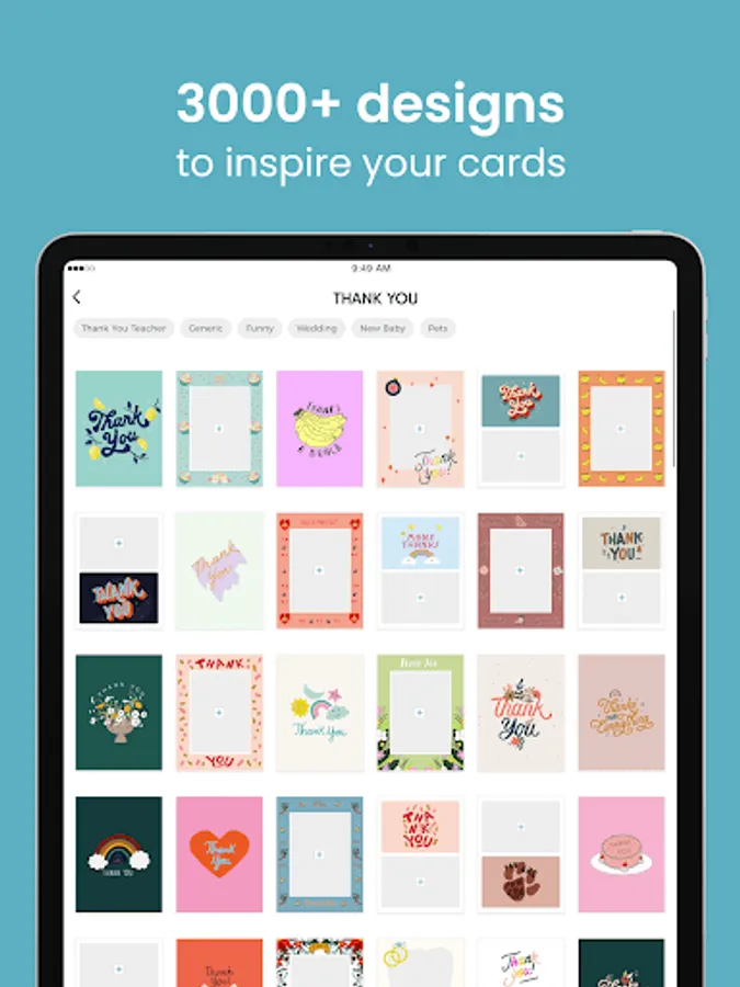 - Beautiful designs for everyday postcards, thank you cards, birthday cards, anniversary cards, wedding cards and more!