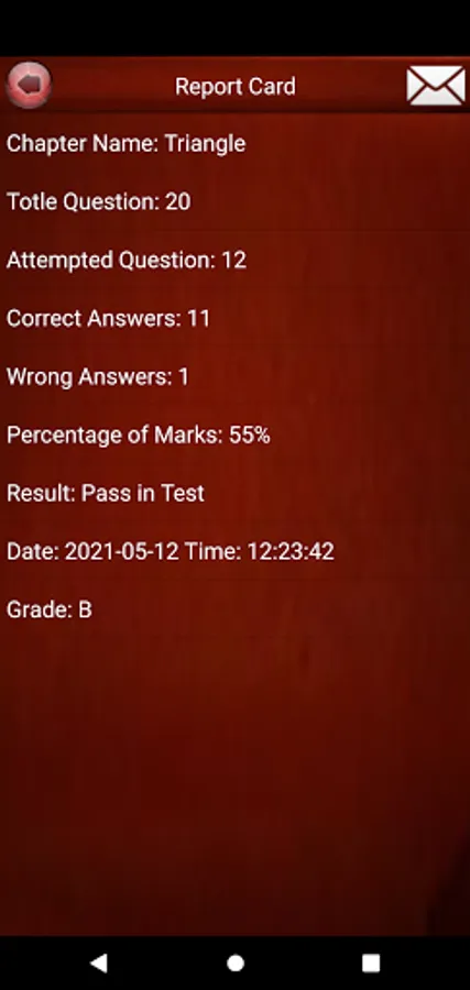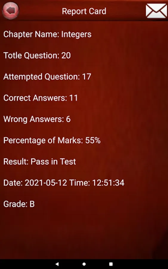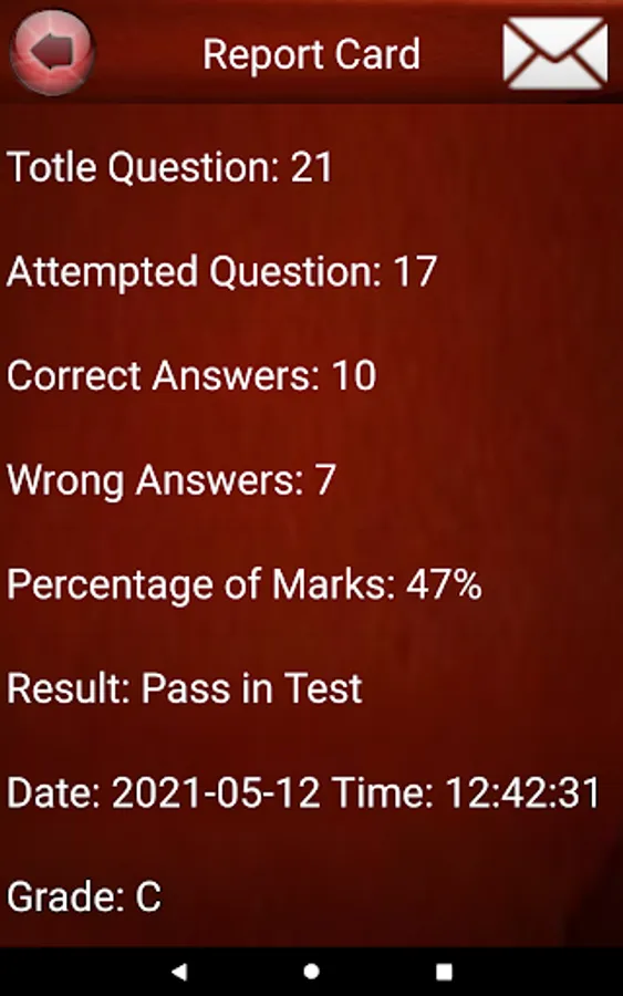 * Report Card: - After playing quizzes you can see your performance report card based on the grading system and also mail your performance report to your teachers, parents, and friends.