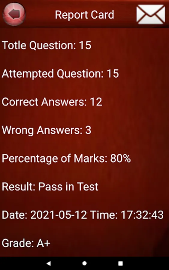 Report Card: - After playing quizzes you can see your performance report card based on the grading system and also mail your performance report to your teachers, parents, and friends.
