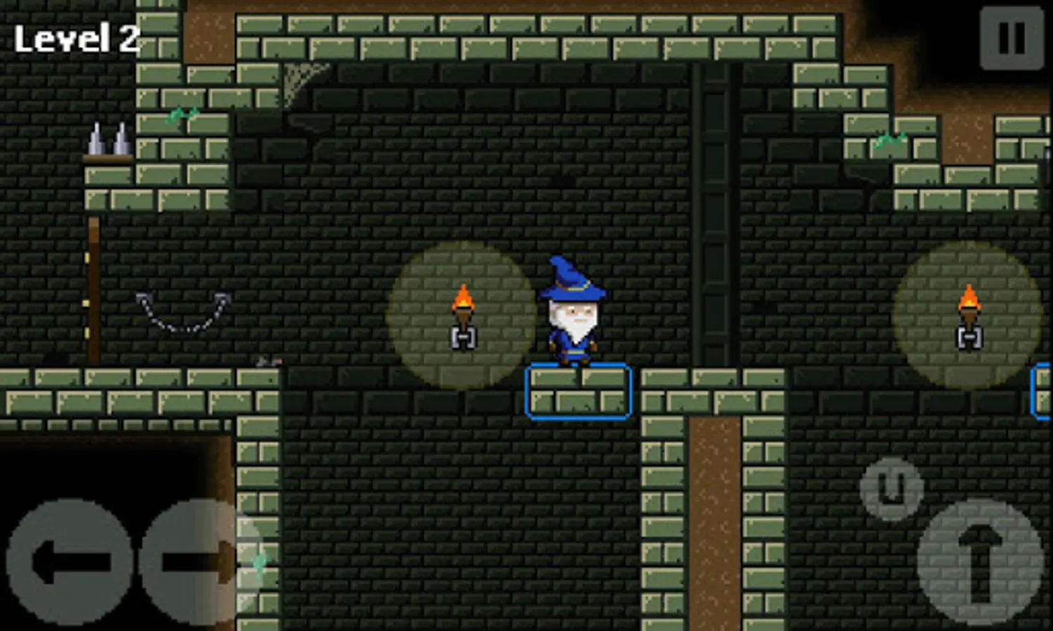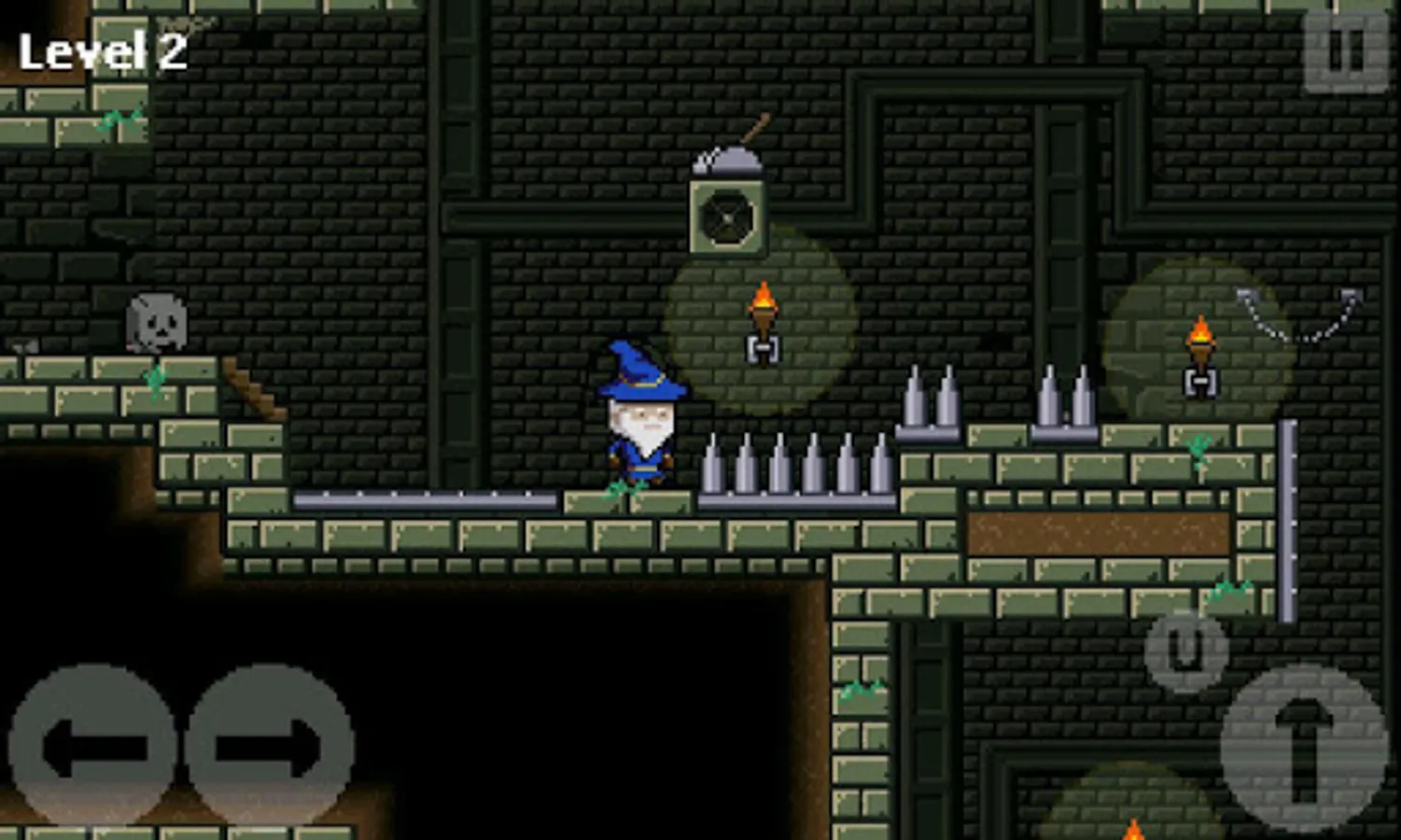 Merlins Adventure is an addictive 2d platform game with a special gameplay. If you like platform games you will love Merlins Adventure. In a nice pixel graphic style you have to solve different puzzles and brainteaser levels. And you have to pay attention to different kind of dangers in the world.