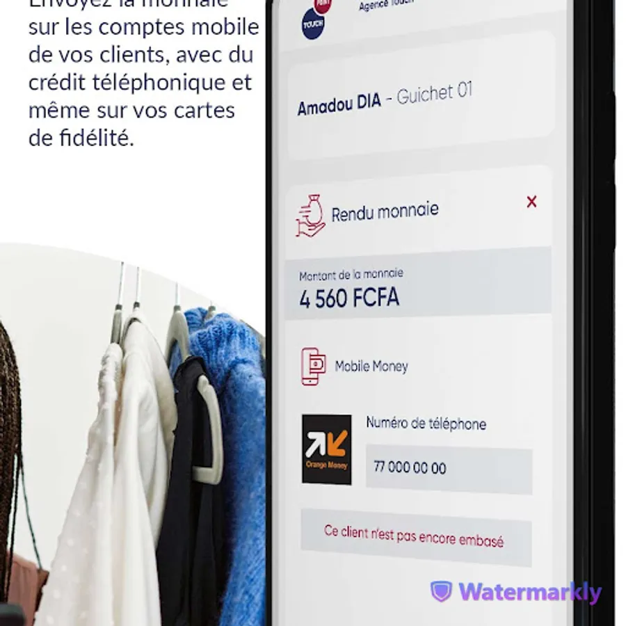 - Change given with the services (a customer can receive change with telephone credit, mobile money or loyalty points)