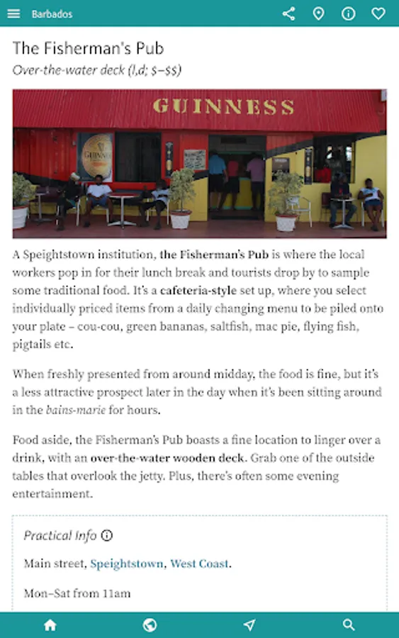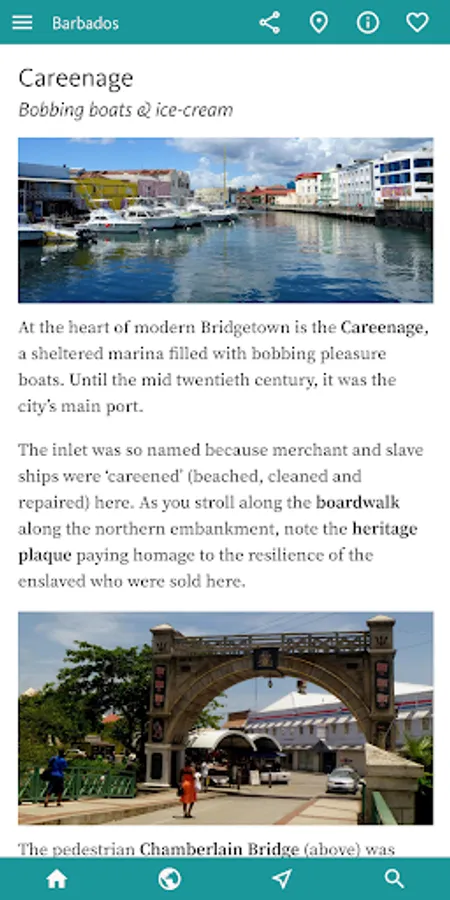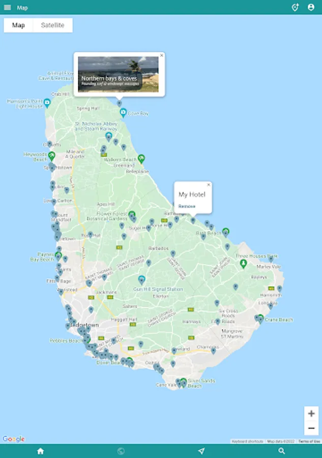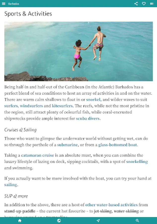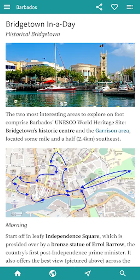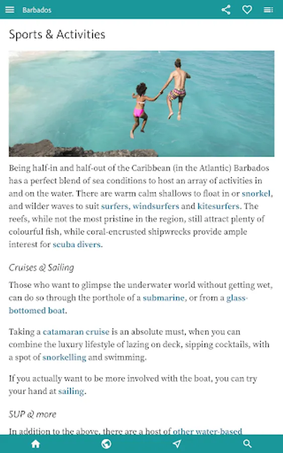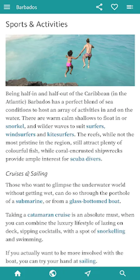 You’ll find all you need to enjoy the best of the island by theme in the next, INTERESTS & ACTIVITIES, section of the app. Here you’ll find an overview of interests as diverse as finding the best BEACHES; the finest places to sample RUM; an inventory of the WATER SPORTS (catamarans, sailing, diving, snorkelling, SUP, kayaking, surfing); and a thorough section on Barbadian HISTORY.