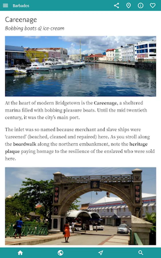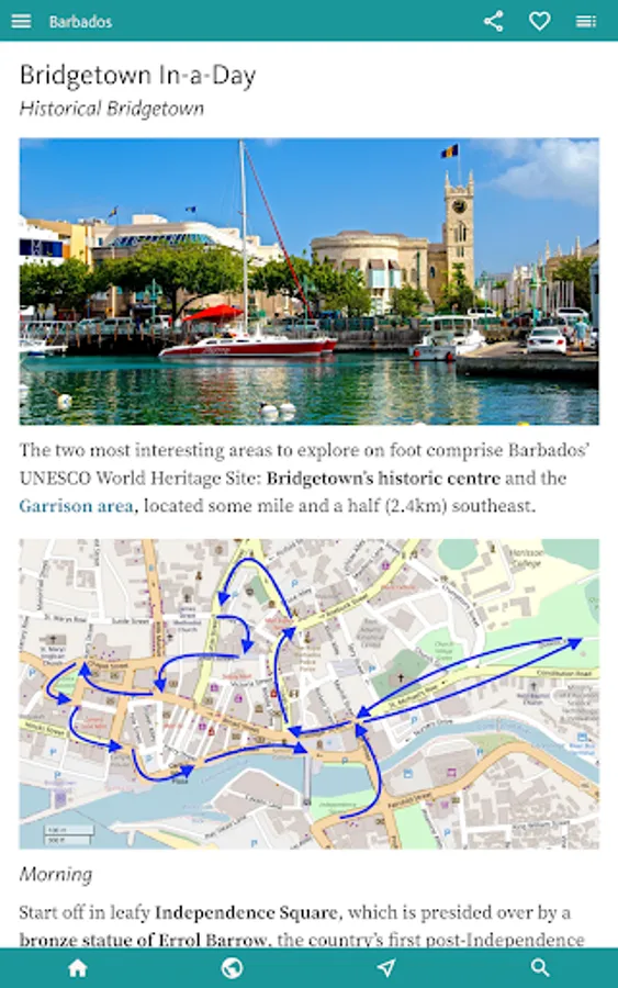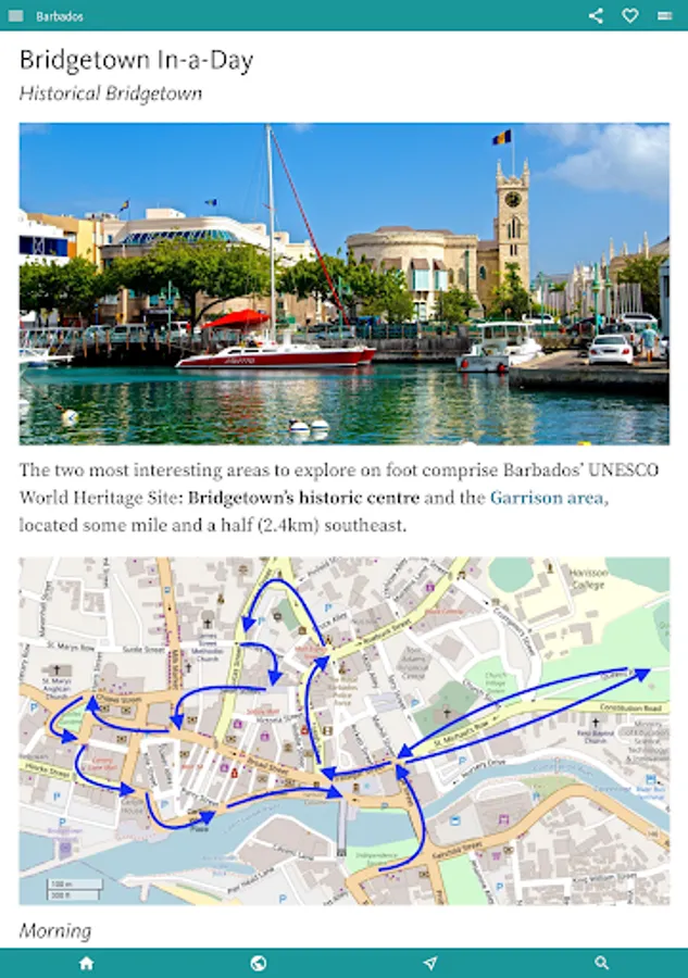 Then, an ITINERARIES and TOURS section suggests how you might start to explore the island, and includes an easy-to-follow walking tour of the main city, Bridgetown.
