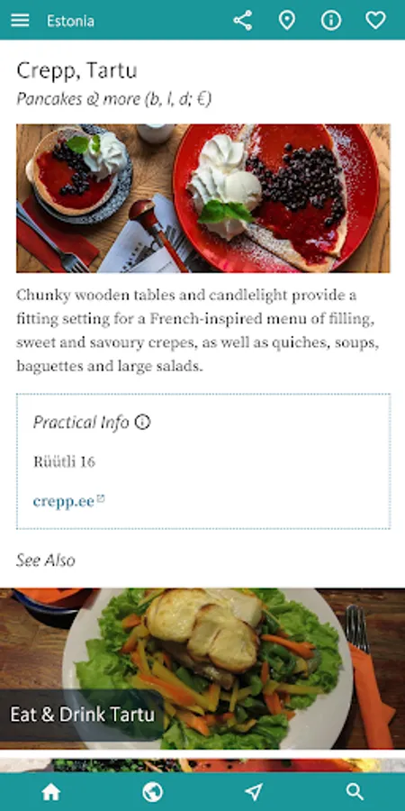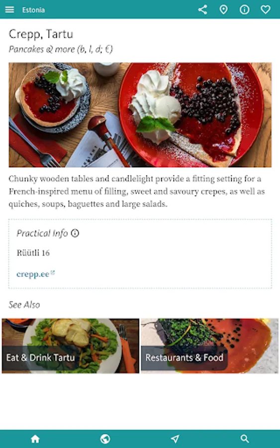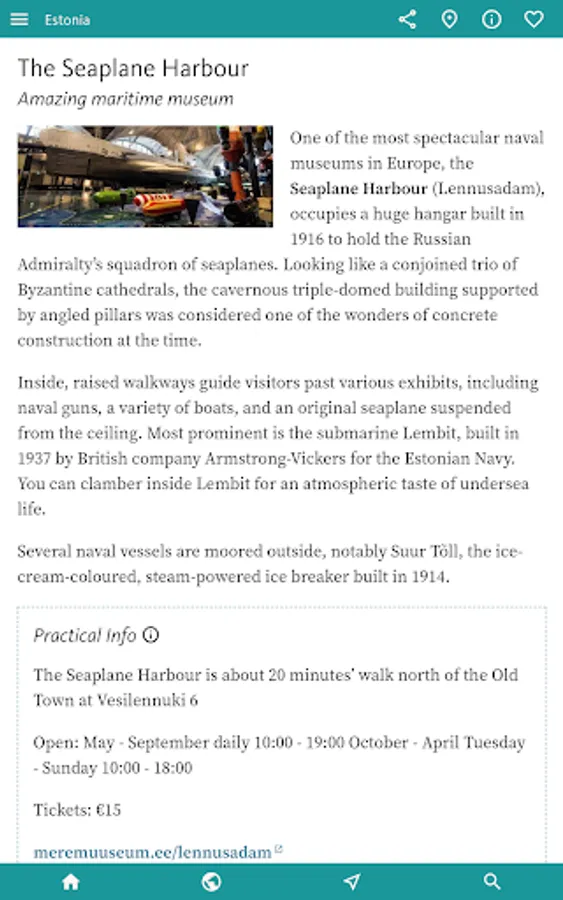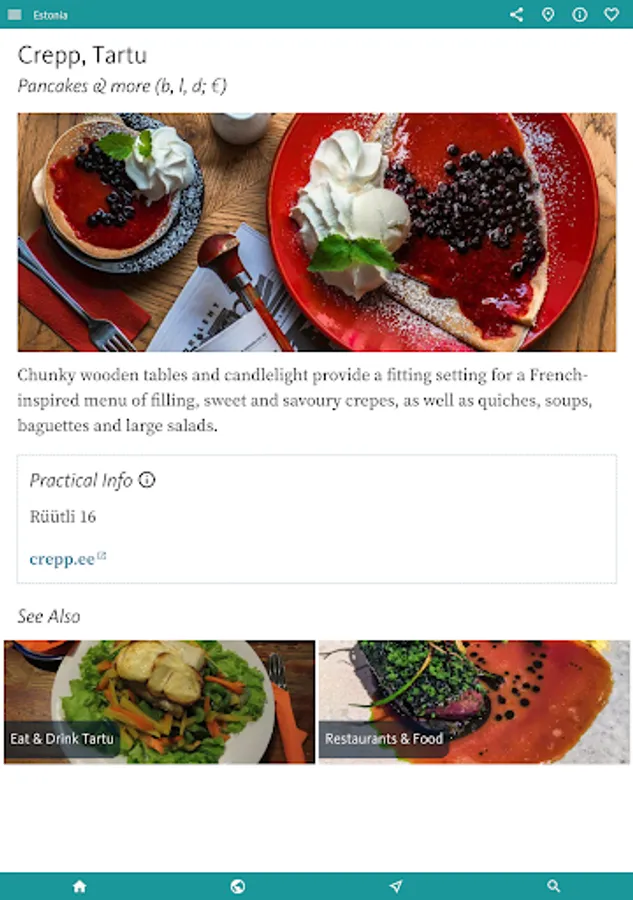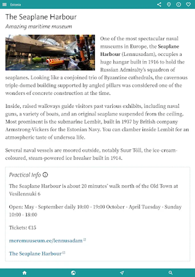 Finally, the app provides useful general advice on FOOD & DRINK, with many RESTAURANT, BAR and CAFE tips at key locations; and finally a SHOPPING section to make sure you find that perfect souvenir.