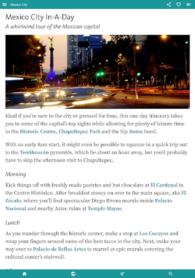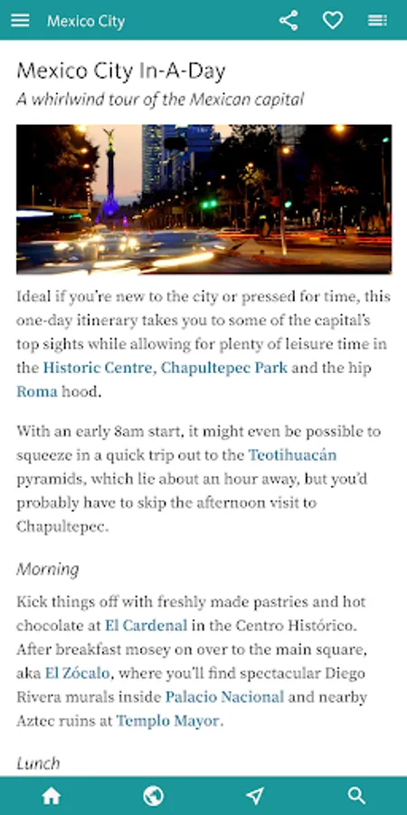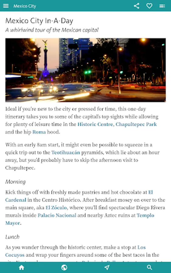 Next, a hand-crafted ITINERARIES section suggests an easy-to-follow route for first-timers to get to grips with city highlights: MEXICO CITY IN-A-DAY.