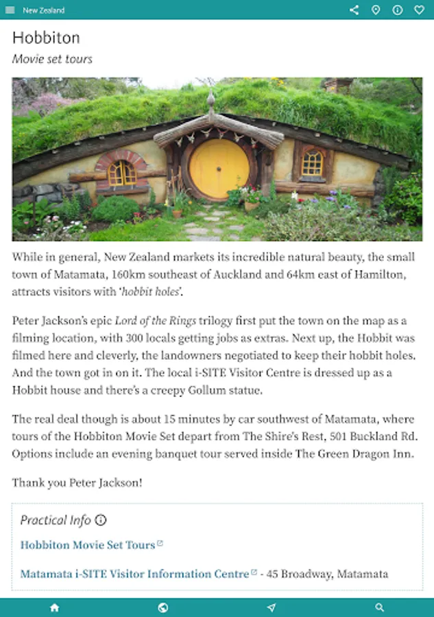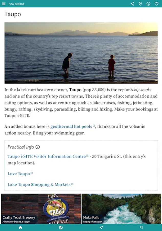 Finally the app details a few good RESTAURANTS, CAFES & PUBS near many key sights and a good overview of NZ’s budding CRAFT BREWERY scene. There’s also a little on SHOPS & SHOPPING to help with souvenir hunting.