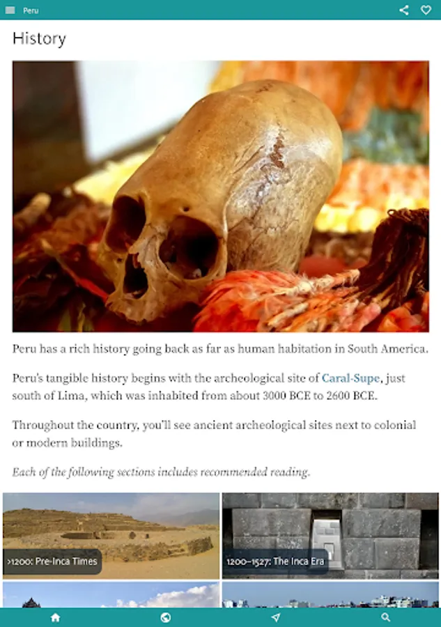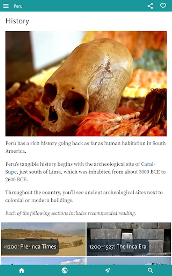 • The entire contents of PERU'S BEST is freely available by installing above. The only restrictions are that this will only work when you are online and only with intermittent ads.