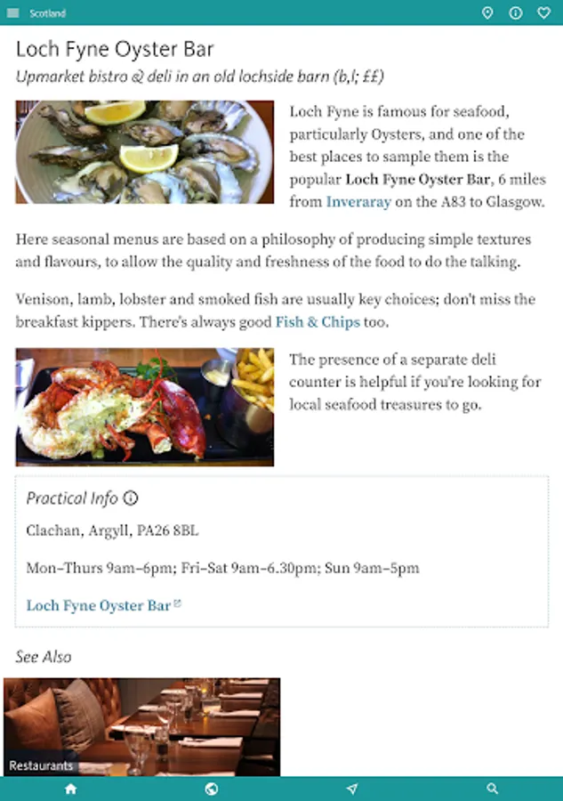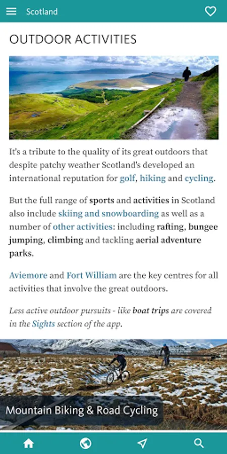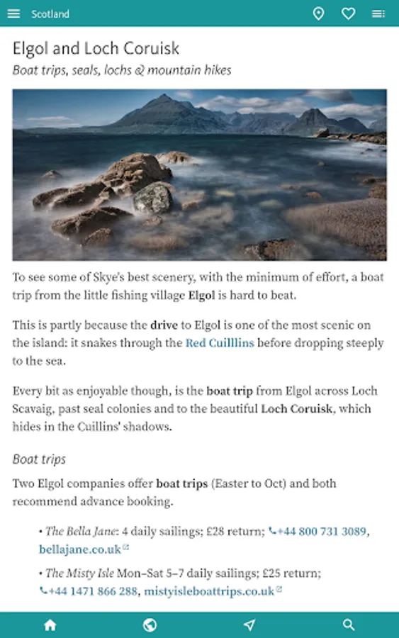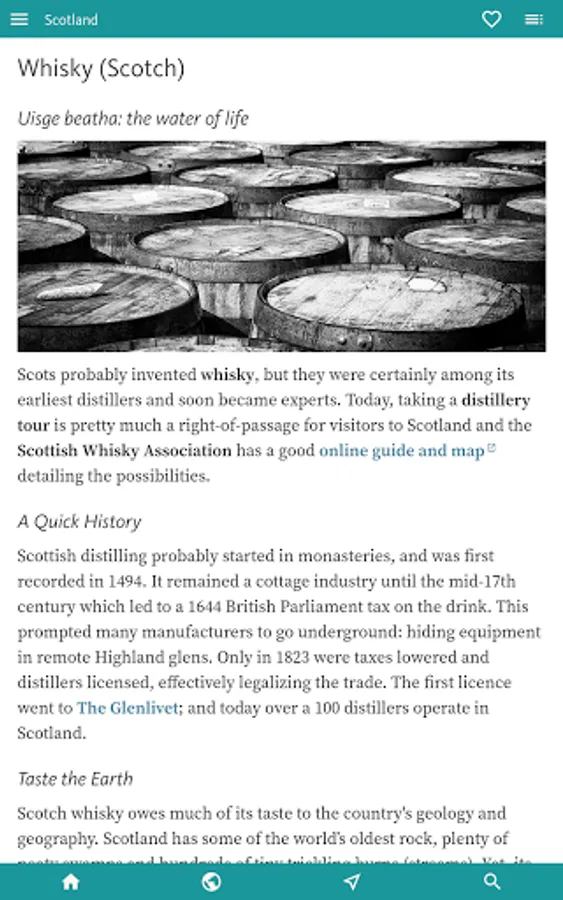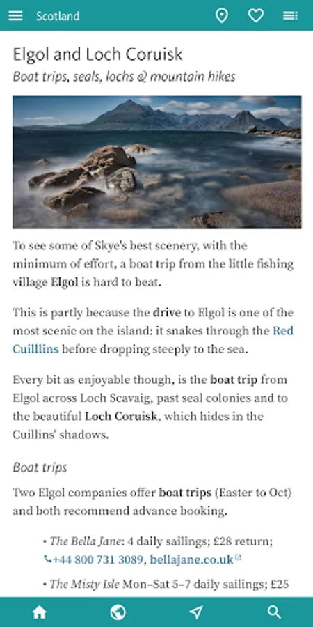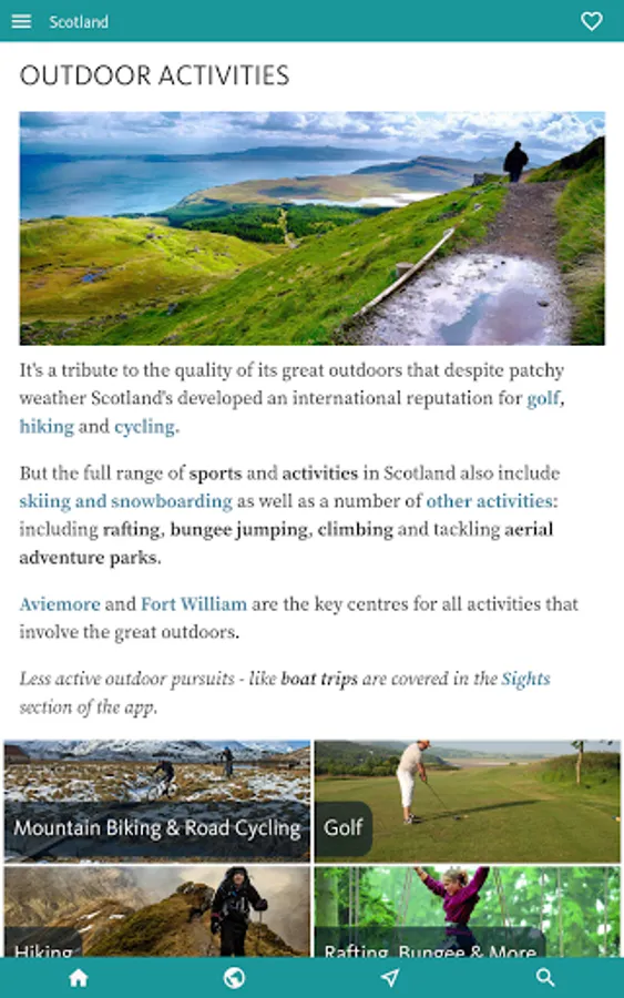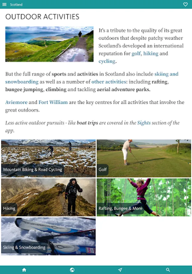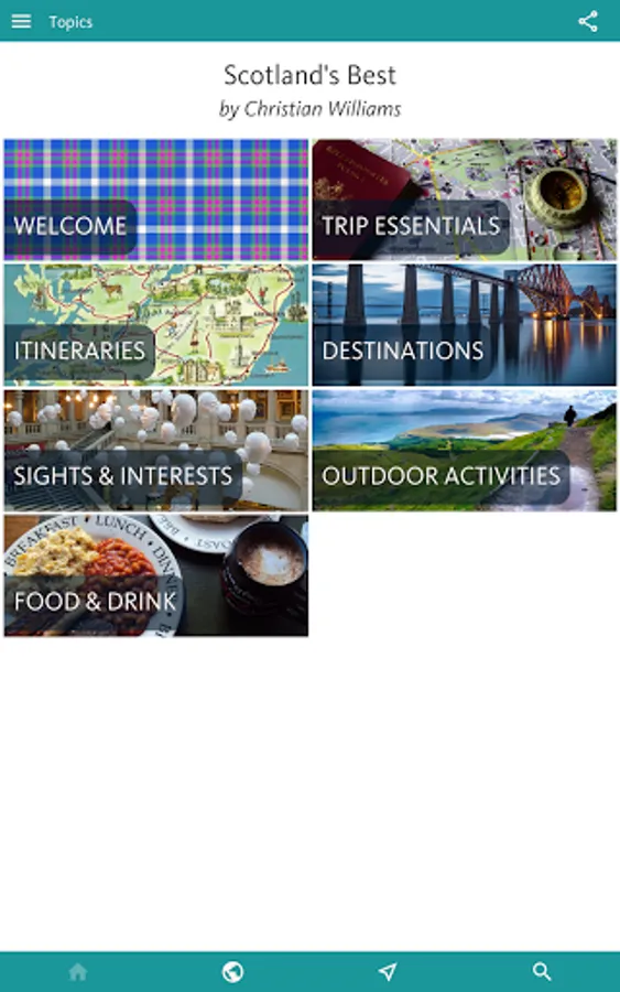 The app also groups Scotland’s finest sights and attractions by INTEREST and ACTIVITY so no-one misses a highlight they'll love. So if it’s HISTORY or WHISKY you’re after; or you want to travel in LUXURY or with KIDS, you can be sure you'll get a good heads-up.