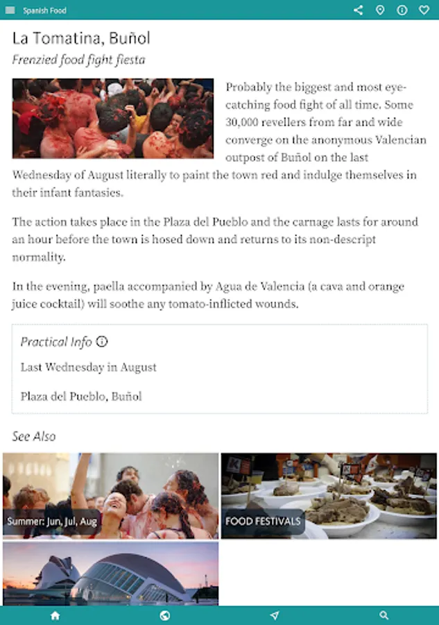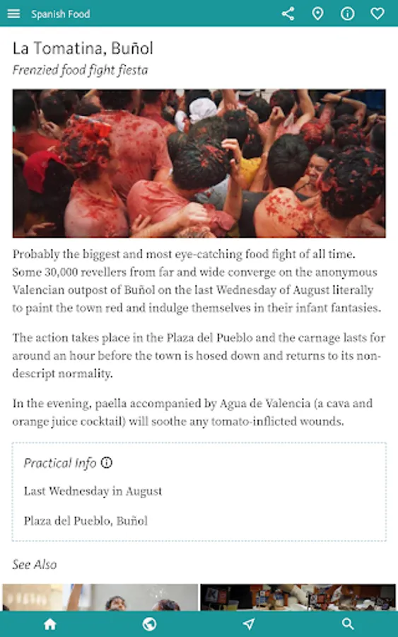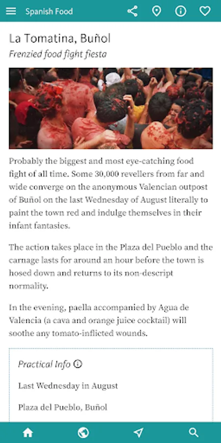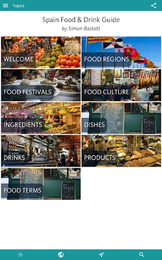 • The entire contents of the SPAIN FOOD & DRINK GUIDE is freely available by installing above. The only restrictions are that this will only work when you are online and only with intermittent ads.
