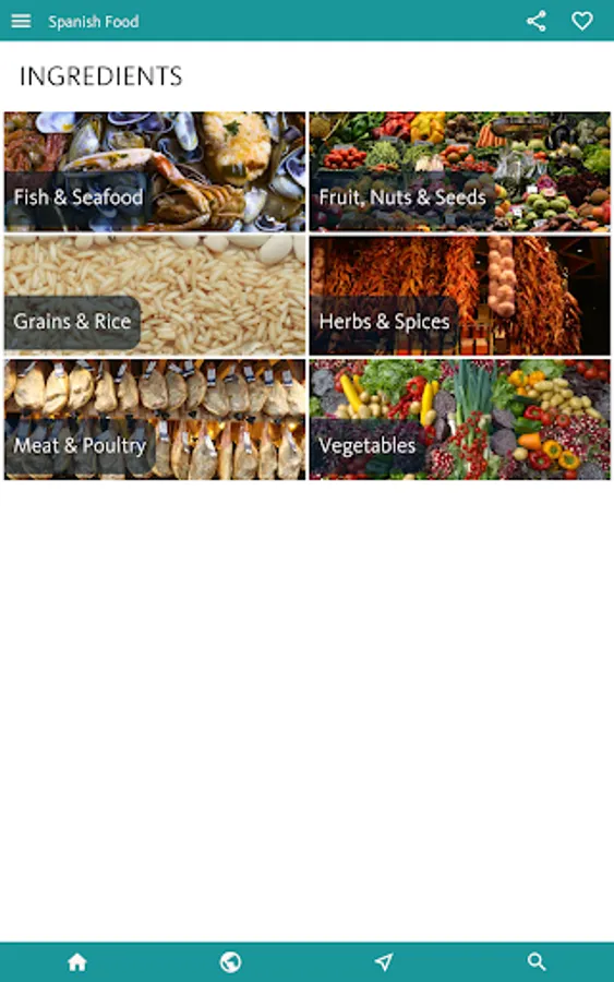 Fish & Seafood - Fruit, Nuts & Seeds - Grains & Rice - Herbs & Spices - Meat & Poultry - Vegetables