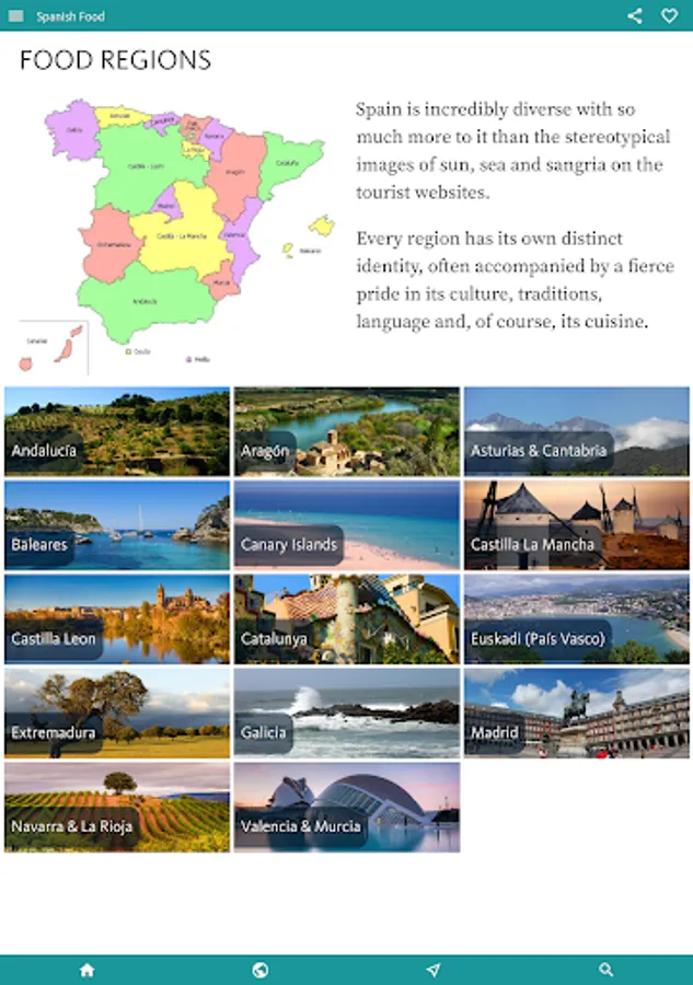 The app explains all the main food and wine classification systems and introduces many lesser known aspects of a culinary tradition that’s so much more than tapas, jamón, sangría and paella!