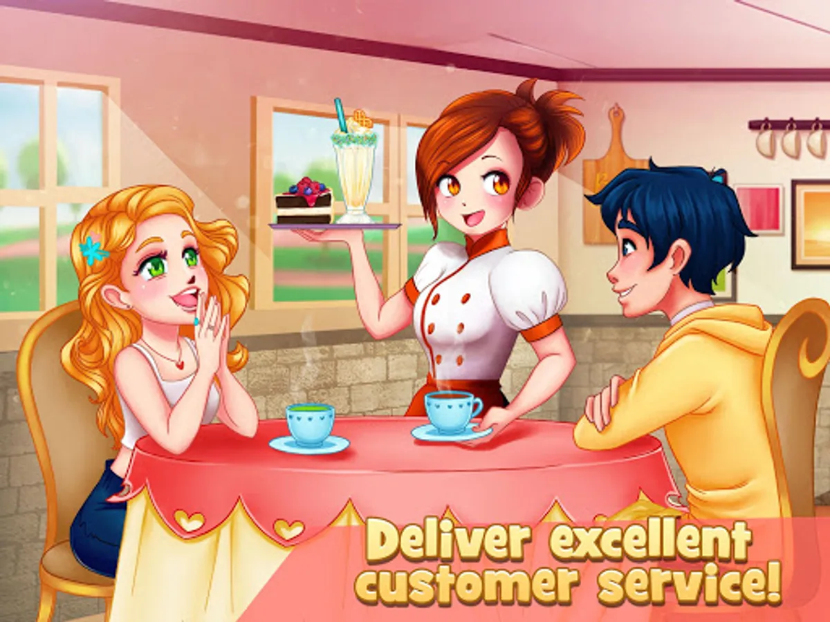 Enjoy creating and baking the customer favorite's cake following the owner's delicious dessert restaurant recipes and become the most famous waitress and coffee maker serving drinks, cupcakes and a wide variety of tasty and yummy cakes! Try the black forest cake and experience the most wonderful taste ever! Meet every delicious caramel cake you have ever imagined in these time-management baking and cooking games and become a great waitress!
