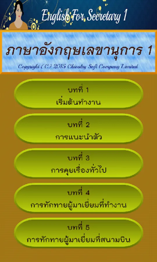 Conversational English crawlers necessary for the Secretary. And individuals who need to coordinate with foreigners in the series, this one consists of 5 chapters include lessons.