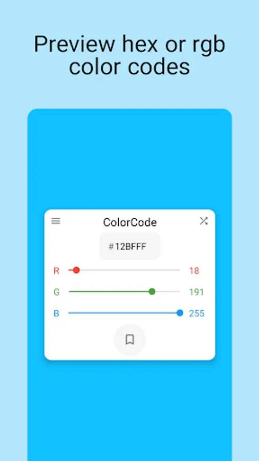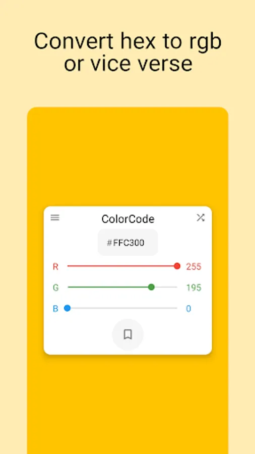 Color Code Picker is the perfect app to preview and pick color code (HEX or RGB), convert hex color code to rgb and vice versa, and save useful color codes in collection.