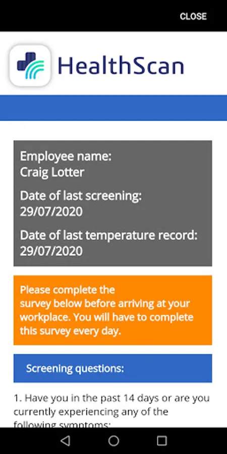 Solve daily pre-screening and risk assessment challenges within your company with HealthScan, built on top of Touchwork's proven Kinetica CX platform. Contact Touchwork for more information or to schedule a demo as to how this tool could help your business meet its health and safety requirements.