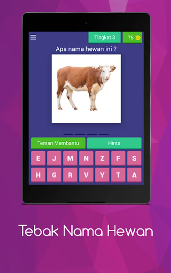 Help children in learning to know the names of animals. This application is packaged in the form of a quiz game. This game is perfect for PAUD and SD children, including young people and parents who play a role in helping the child learn to know the names of animals and fruits and the names of flowers.