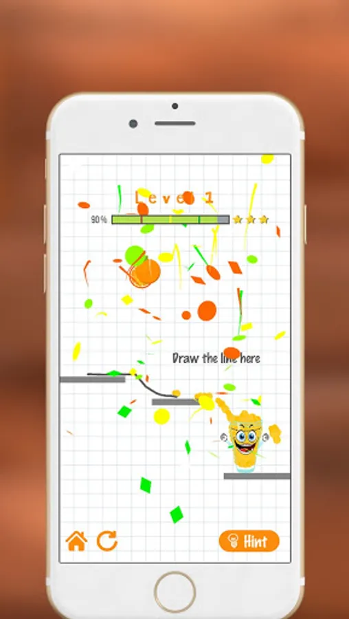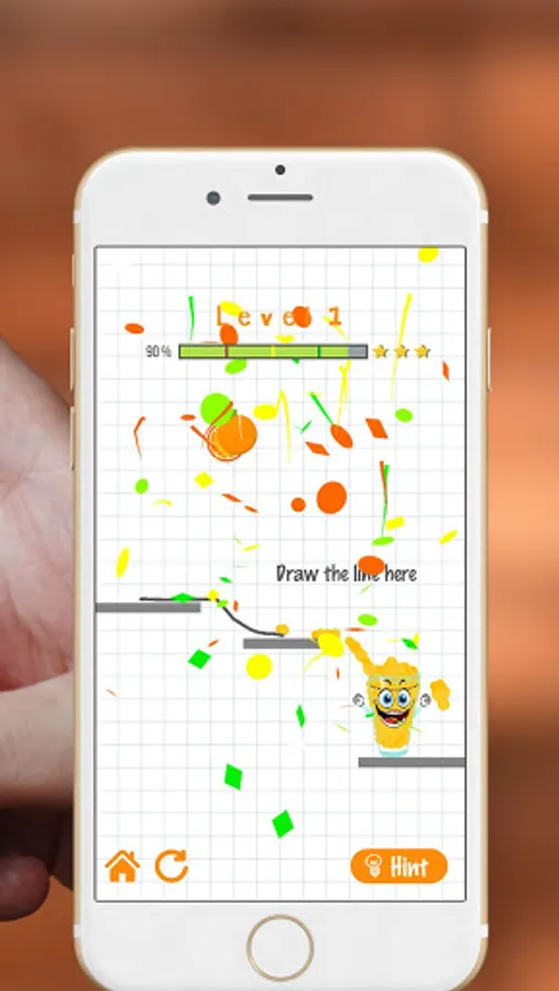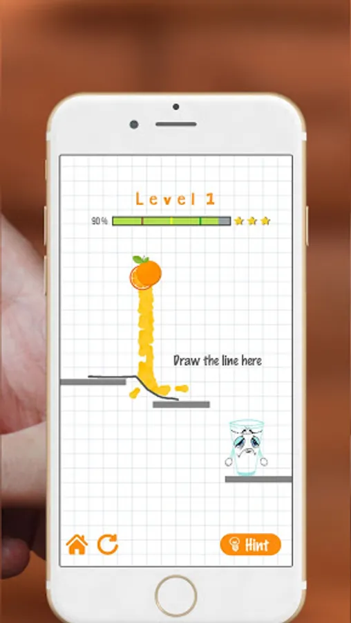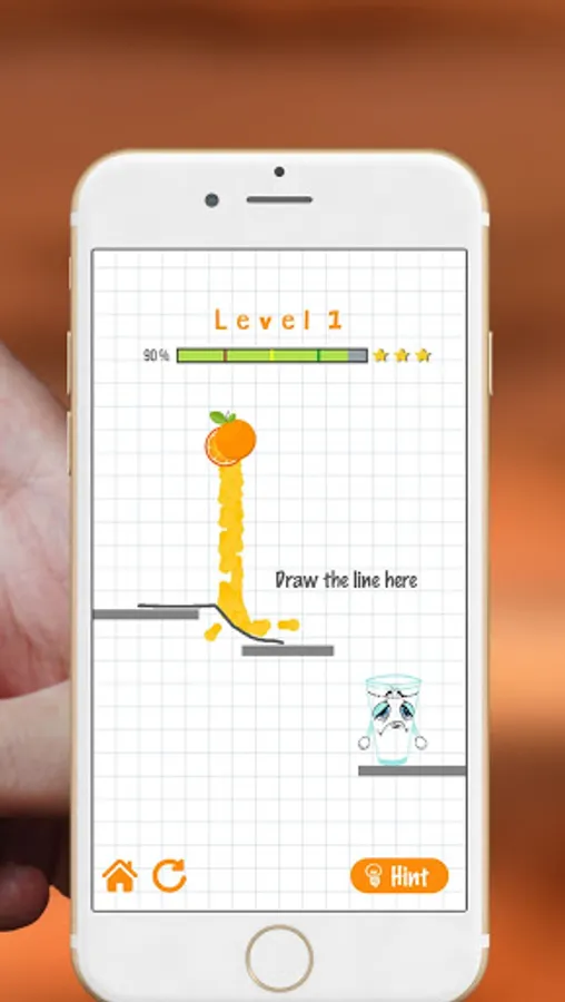 Make Tom happy by filling the glass with orange juice that you direct from the orange using the line you made.