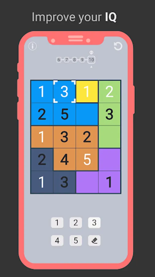 Relax while training your brain in this minimalist puzzle game. Fill the grid with numbers that can appear only once in each area. It is more complex than it looks, give it a try and let us know if you like it!