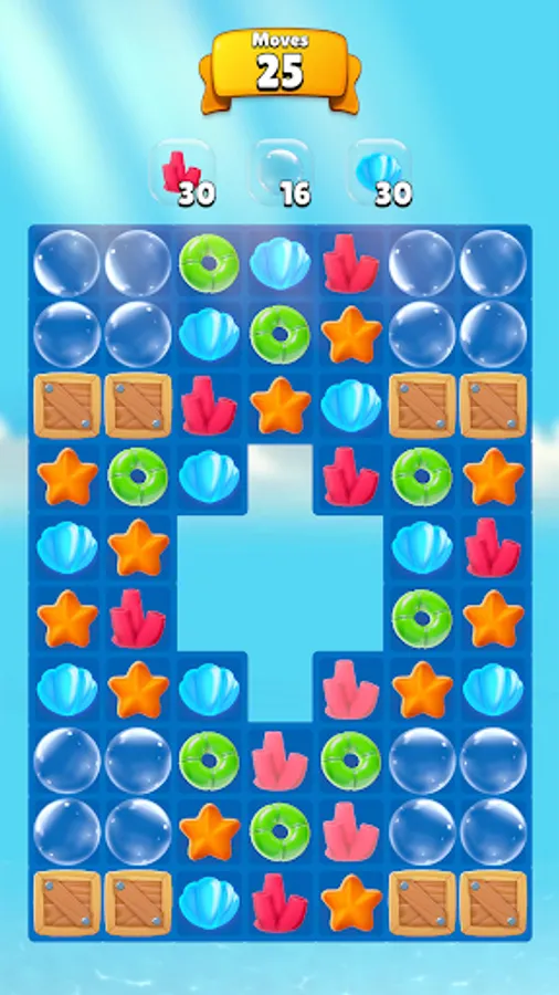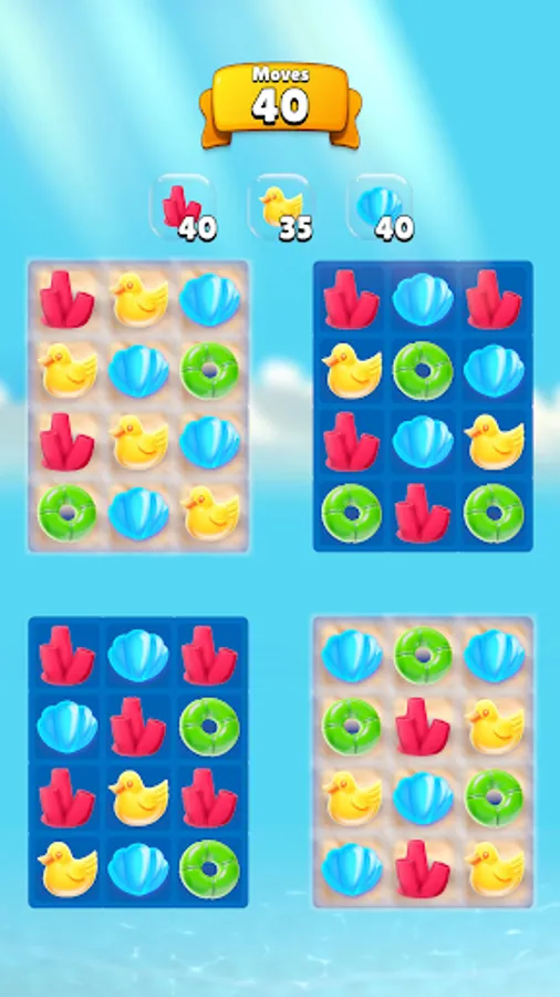 Summer Match is your summer puzzle game! Create rows or columns of three or more identical elements by sliding the board. Collect shells, starfishes, corals and other typical summer items. Each level has a unique goal to reach with a given number of moves. The more combinations you form, the more points and bonuses you earn!