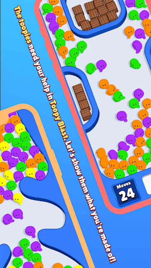 Tap to blast 3 Toopies. Match of four or more to create a Toopy Bomb. Combine two Toopy Bombs to get a Super Bomb and two Super Bombs to get a Max Bomb! The bigger the match, the bigger the blast!