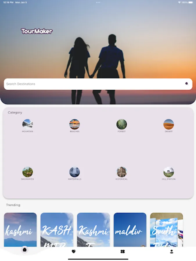 TourMakerTM is an app that helps you pick yourself tours which matches with your dreams and Budgets