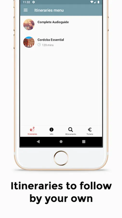 Don't you exactly know how to profit your time? Where to start? We are here to solve that! We propose itineraries by hours, in order to enjoy the place as much as you can! You will feel like on a tour, but on your own and at your own pace. Once you choose one of the itineraries (paying a ridiculous price of less than € 5), you can follow the route and listen to the audio guides, which will give you information to understand what you see once you are in front of it. Or if you prefer, you can read it.