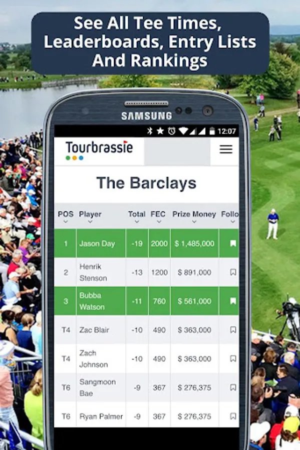 Tee times: Get the tee times of your favourite players as soon as they are available.