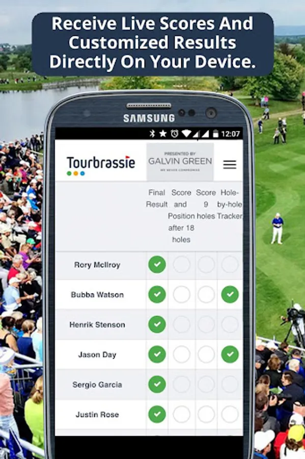 Score after 9 holes: Receive the front 9 results of your favourite players as soon the first 9 holes are finished.